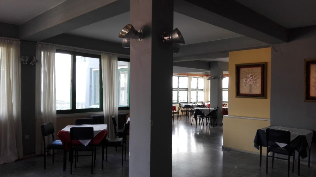 Przestrzenie wspólne (lobby, restauracja itd.) zaprojektowano tak, aby mieściły więcej osób niż pokoje (początkowo 32 łóżka). Miało to dawać komfort nawet w wypadku pełnego obłożenia obiektu. Proporcje mogły się zmienić w latach 70. po dobudowaniu drugiego skrzydła, mieszczącego dodatkowe 40 łóżek. Nasza wizyta przypadła na wrzesień, a więc okres poza sezonem. Byliśmy chyba jedynymi gośćmi i przestrzenie na parterze stwarzały poczucie pustki i nostalgii za czasami minionymi.