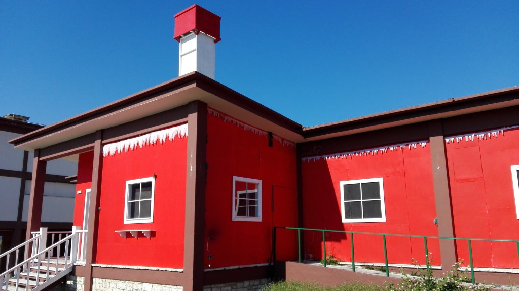 Jak widać na zdjęciach, dokonano pewnych dyskretnych zmian w ogólnym wyglądzie budynku. Wszystkie okna wyglądają na wypełnione dyktą, a okolice wejścia zostały dodatkowo podkolorowane na dom Świętego Mikołaja.