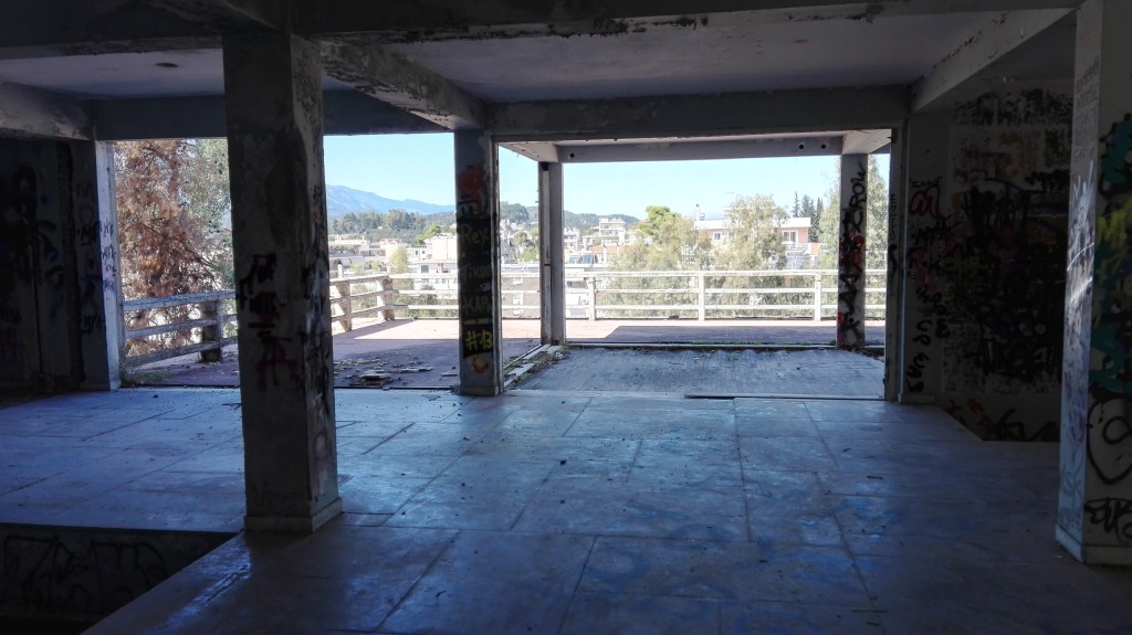 Od 2017 roku lokalne władze kombinują dalej, jak podejść do sprawy: powstaje pomysł wystąpienia o fundusze z programów strukturalnych na dostosowanie budynku do celów kulturalno-oświatowych (biblioteka publiczna, szkoła muzyczna, restauracja i amfiteatr) – udaje się i wszystko to dostaje 2,5 mln euro (według doniesień na bieżąco) albo i 3,5 mln euro (tak teraz mówią: miasto i zaangażowani w projekt politycy, jak poniżej). W 2019 podpisano umowę na wykonanie wstępnych badań i przedstawienie propozycji. Między 30 kwietnia a 30 maja odbyły się konsultacje społeczne projektu (bolesne wizualizacje i więcej szczegółów comic sansem tu). Jak na załączonych obrazkach: koszmarny minojski sen (o którym nie da się doczytać nic!) zamieniono na brutalnie ‘nowoczesny’ i typowy budynek użyteczności publicznej, ze zwiększoną o 400m2 powierzchnią zabudowy, który według twórców szanuje archeologiczny kontekst. W reakcji na tę propozycję wypowiedział się w tonie niepochlebnym grecki oddział Docomomo, organizacji non-profit, zajmującej się dokumentacją i konserwacją (a także promocją) budynków, osiedli i założeń modernistycznych. Z wypiekami czekamy na wyniki konsultacji…